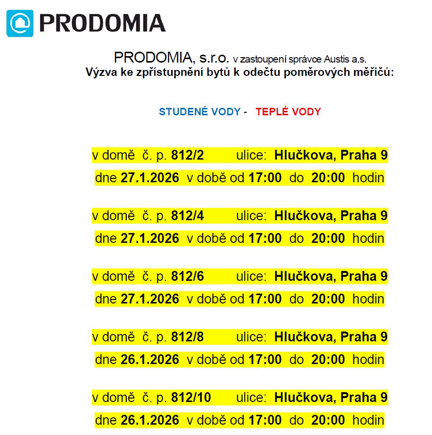 Vážení obyvatelé objektu Hlučkova 812,